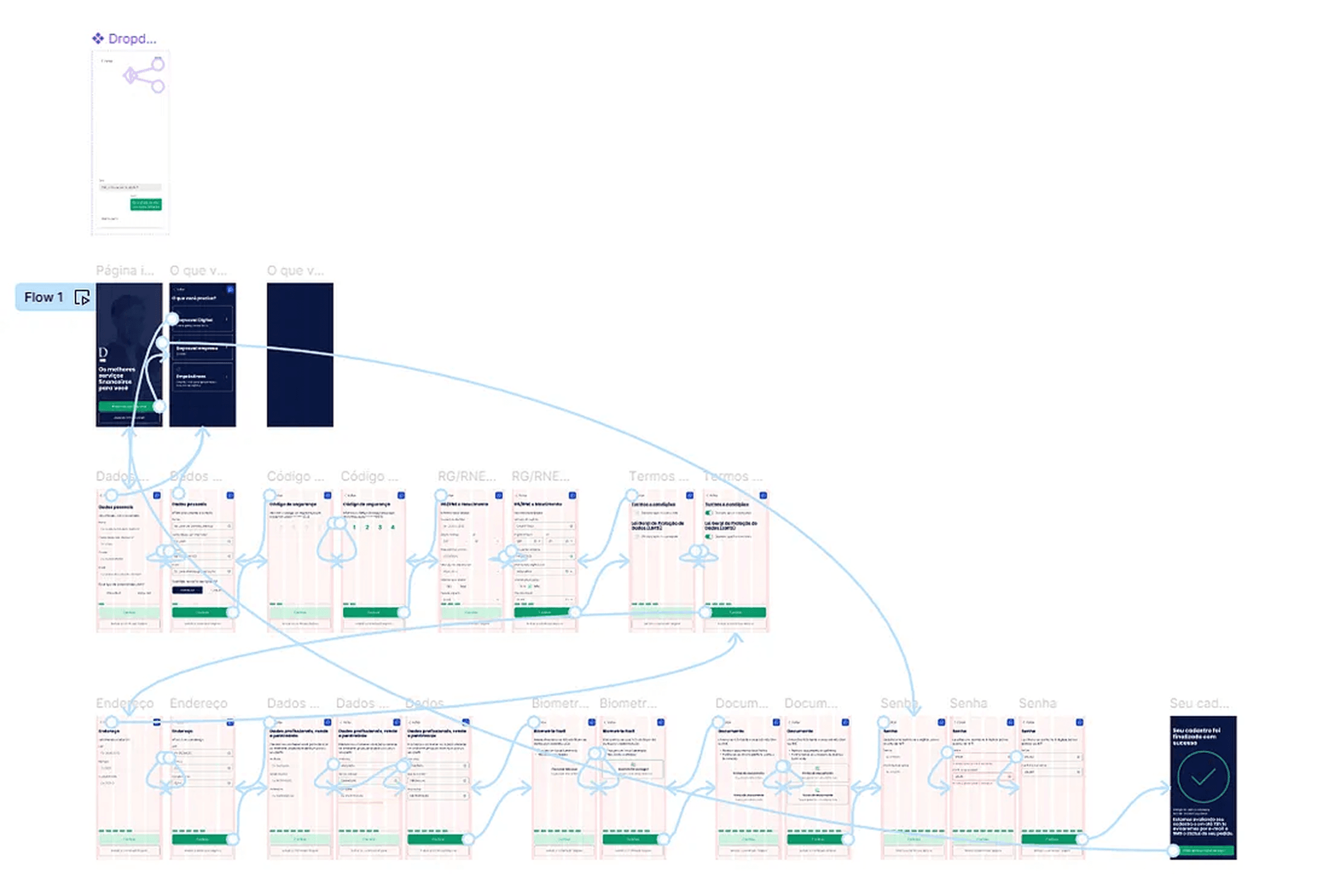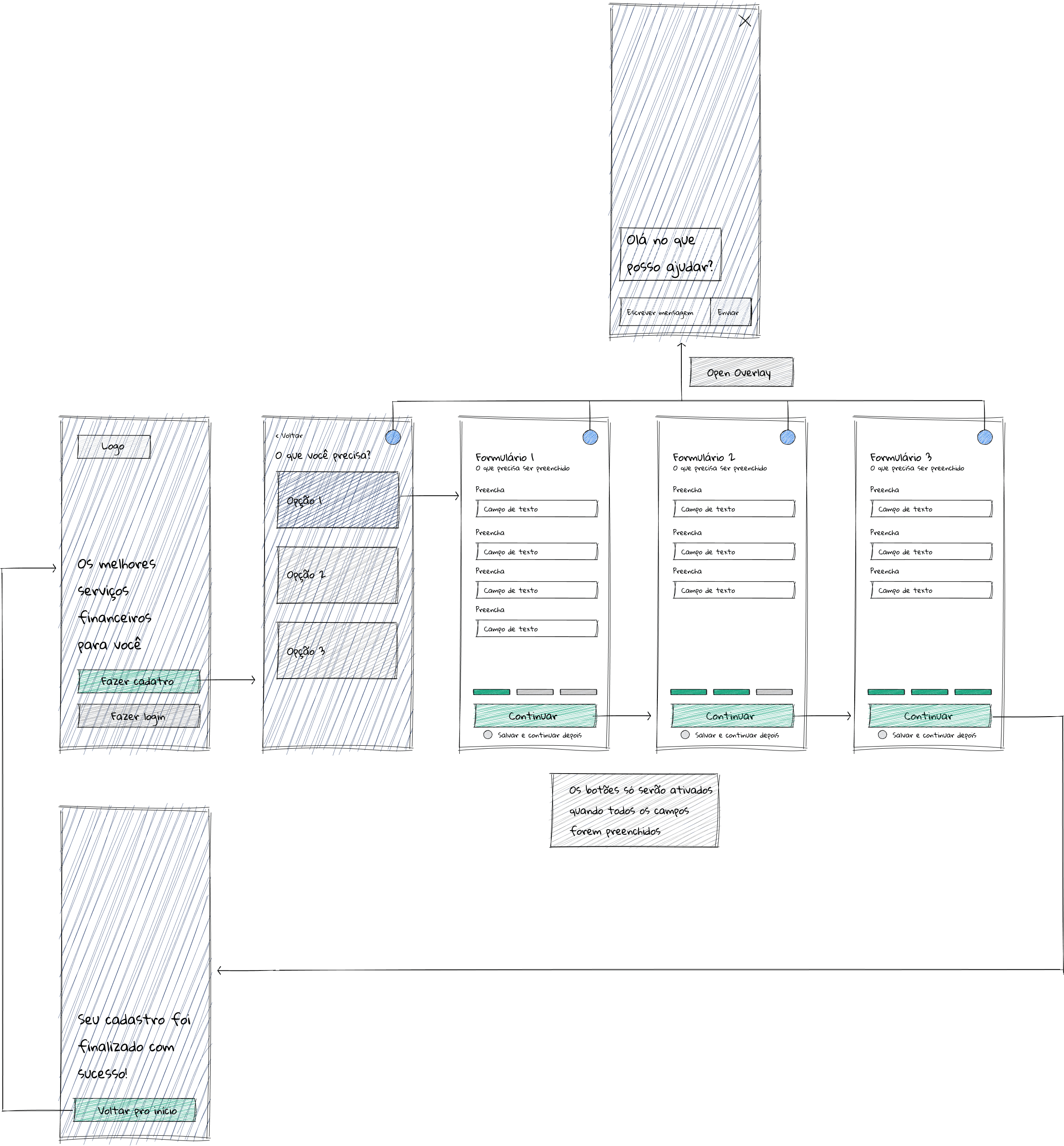 A fim de testar as melhorias no onboarding de abertura de conta, com base nas features definidas, Wireframe e UI Style guide estabelecido, foi realizada a prototipação.