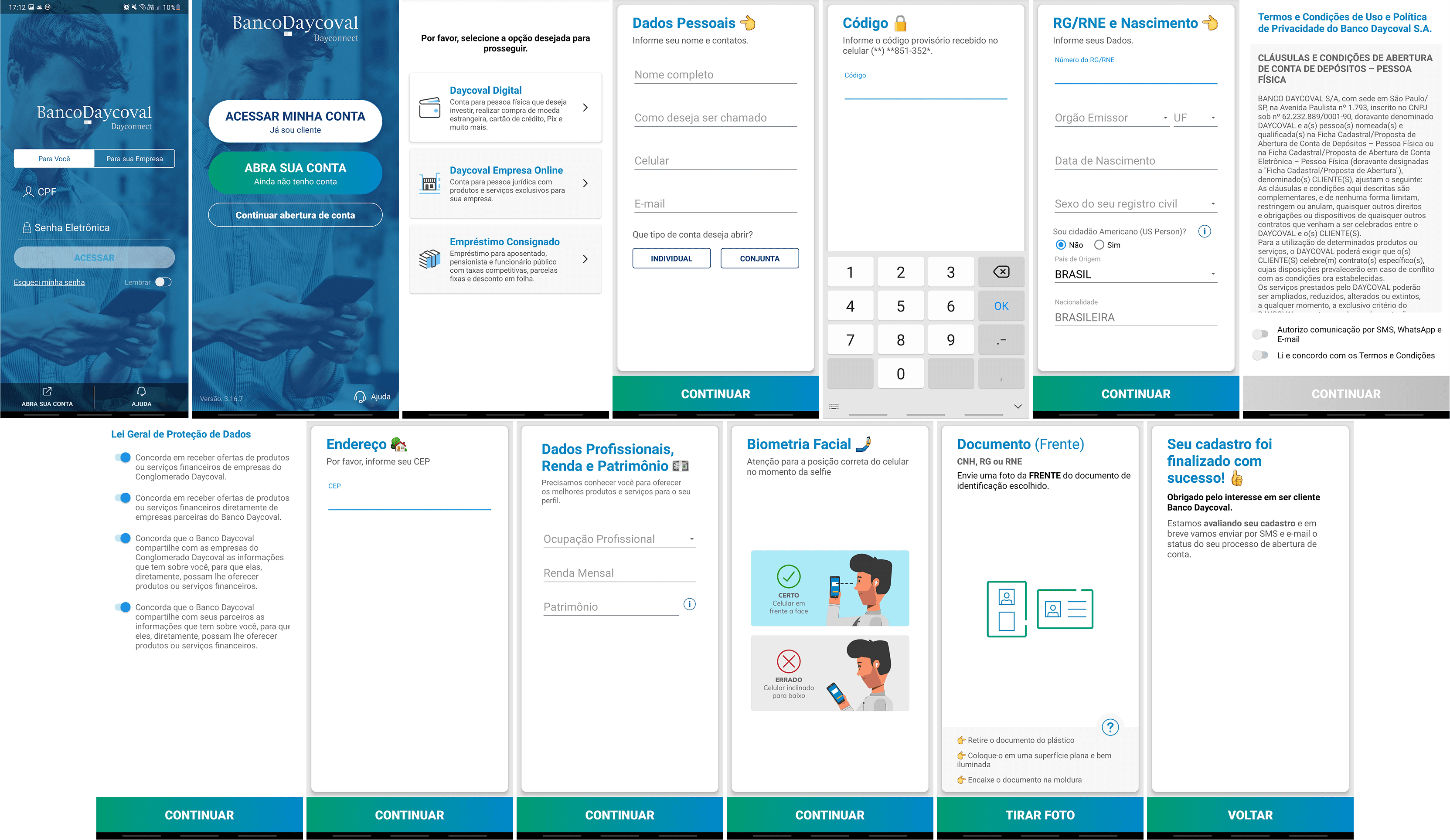 Tendo como foco identificar e corrigir problemas de usabilidade na interface atual do onboarding de abertura de conta do Banco Daycoval, foi aplicado um formulário com base nas “10 Heurísticas de Nielsen”, levando em conta critérios de avaliação e sendo adicionados comentários sobre os problemas observados em cada heurística.
